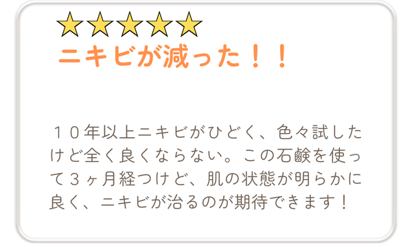 再度この石鹸を使ったら、また3日くらいでニキビが減りツルツルになりました。