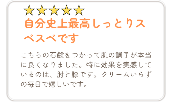 この石鹸のファンになりました。肌が柔らかくなり、化粧水の入りが全然違う!この石鹸は救世主だと思っています!
